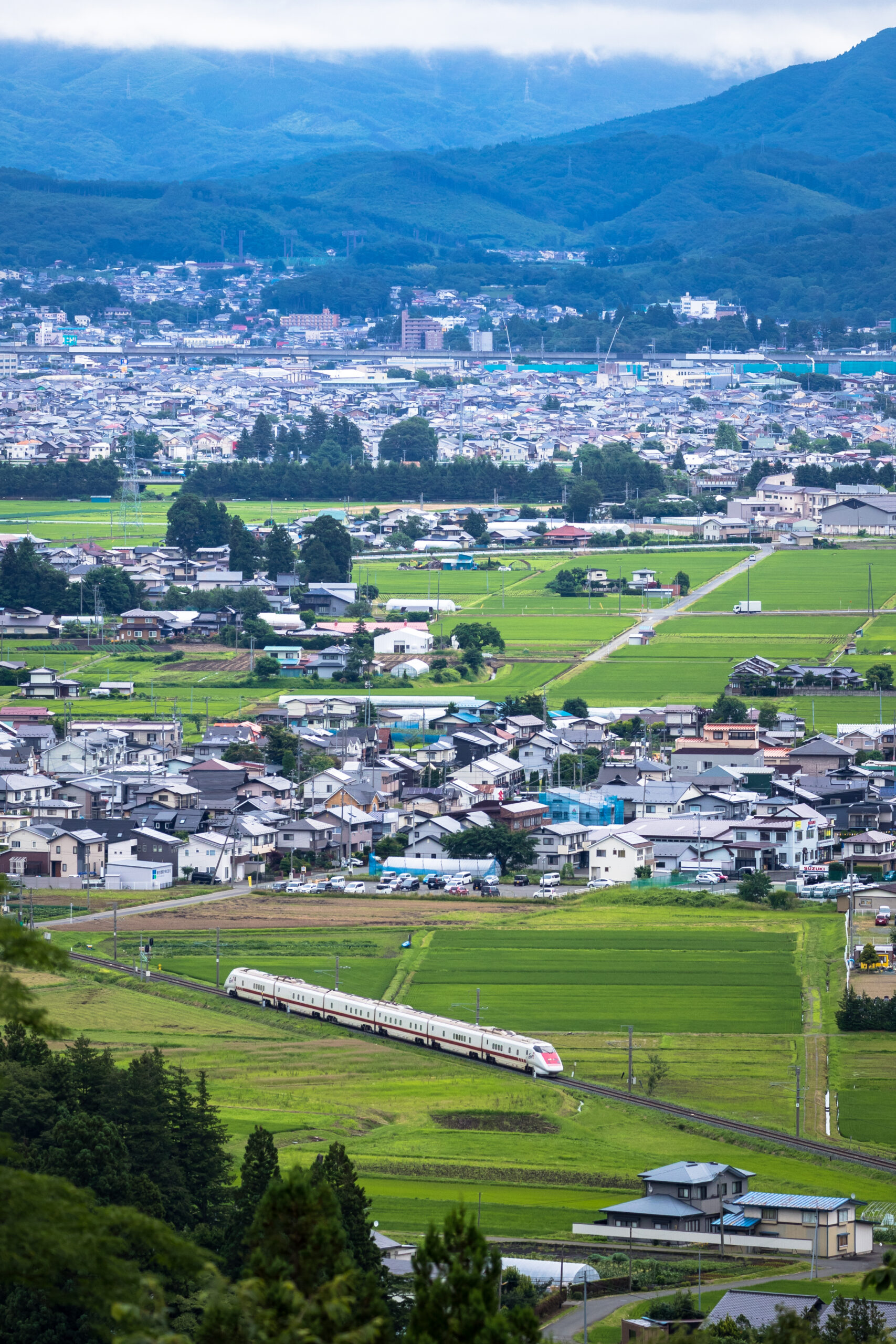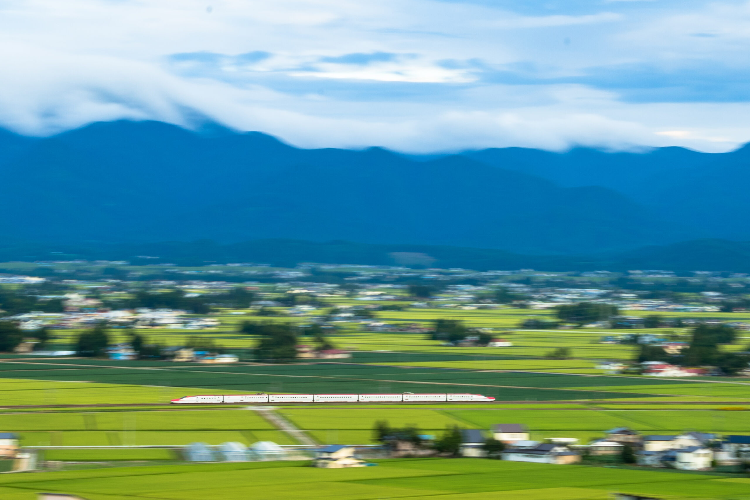 As the train approaches the Ōu Mountains, the greenery deepens;
